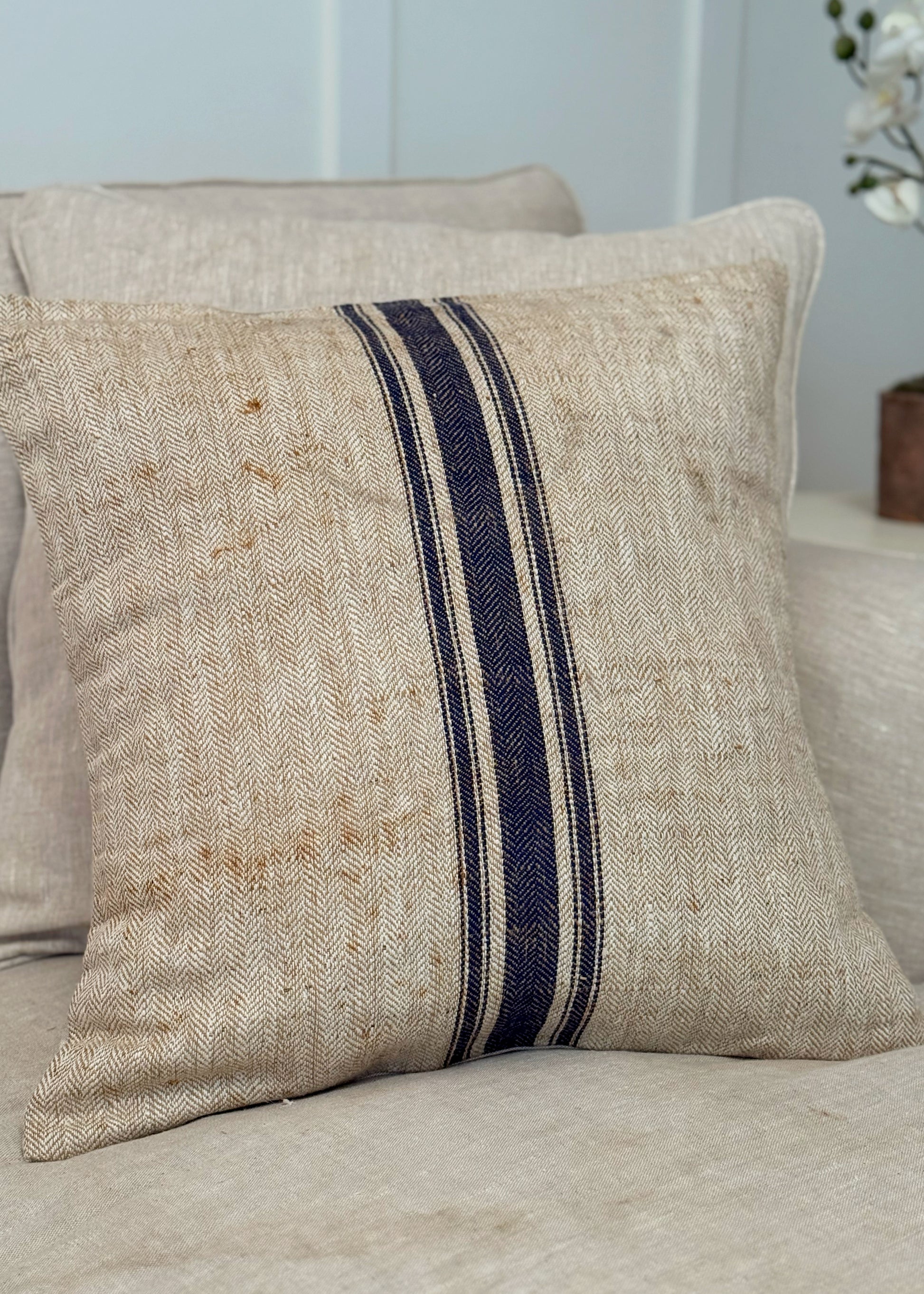 Markings in stripes or hand-stitched initials identified the family or farm it belonged to. Any visible repairs were done not for decoration, but to keep it working. What remains is strong, honest cloth with a lived-in texture and clear purpose.