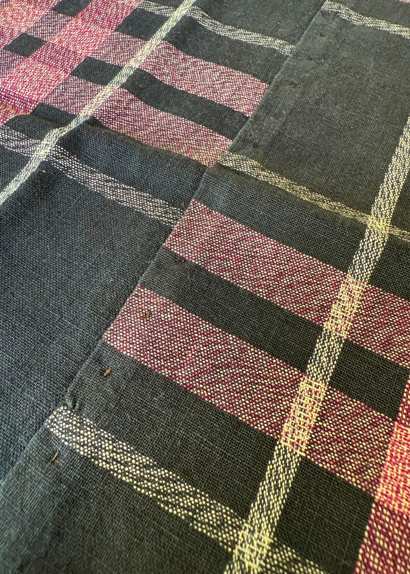 Hand-pieced in the quiet hours of rural Japan, this textile carries over a century of wear, repair, and reverence. Cut from a mid-to-late 1800s futonji—a patchworked bedding cloth made from dyed cotton scraps—this fabric tells the story of utility elevated to art. Stitches overlap like topographic lines, each mend a quiet act of resilience. Faded hues of deep indigo reveal years of use, sunlight, and life lived close to the earth.